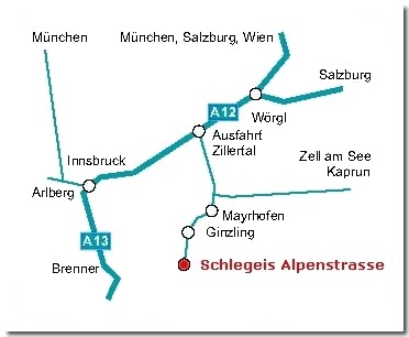 B168, B165 en de B169 naar Mayrhofen en verder richting Ginzling.